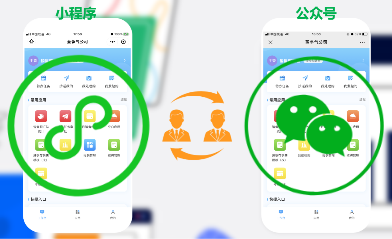 随着业务的复杂性增加,用户对云顶的使用深度也在不断增强,除了在PC端的使用外,也可以通过与微信绑定的方式在微信公众号与微信小程序中同步使用,进行云顶业务协作。
