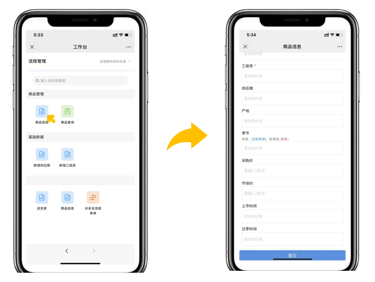 选择应用中的表单即可在线编辑、查询,格式经过了移动端适配,可以很随时随地进行数据录入操作。