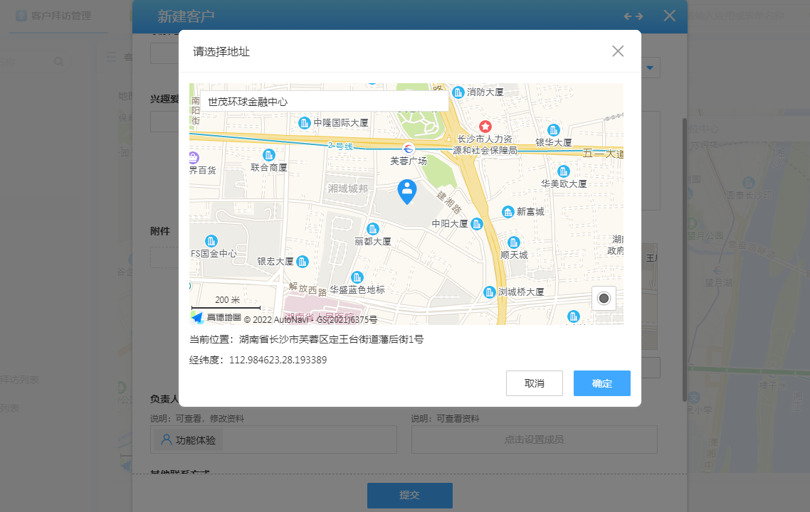 借助地图报表,可以快速获取拜访客户的准确定位以及交通路线参考。在地图报表的右上角可以一键新增客户/拜访客户,直接获取当前位置或搜索具体位置即可录入到地图报表中。