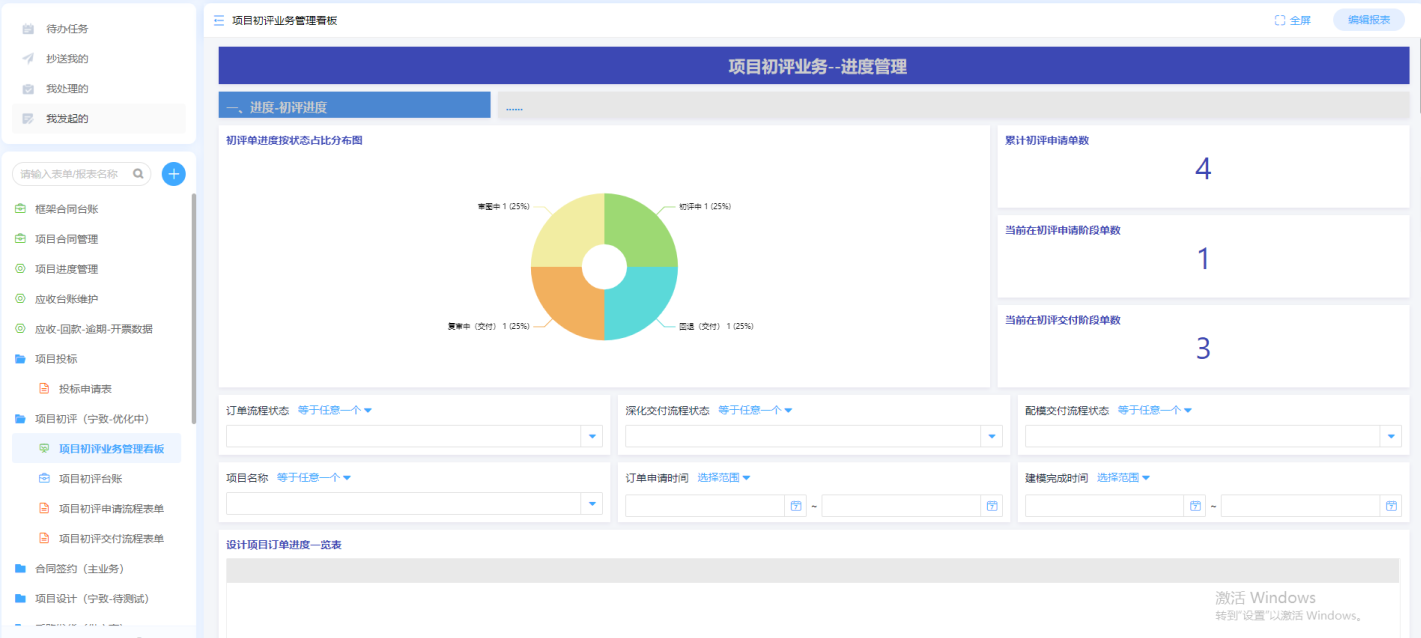 提供可视化图表展示,及时获得已提交项目的审核情况,有助于业务员实时跟进项目。