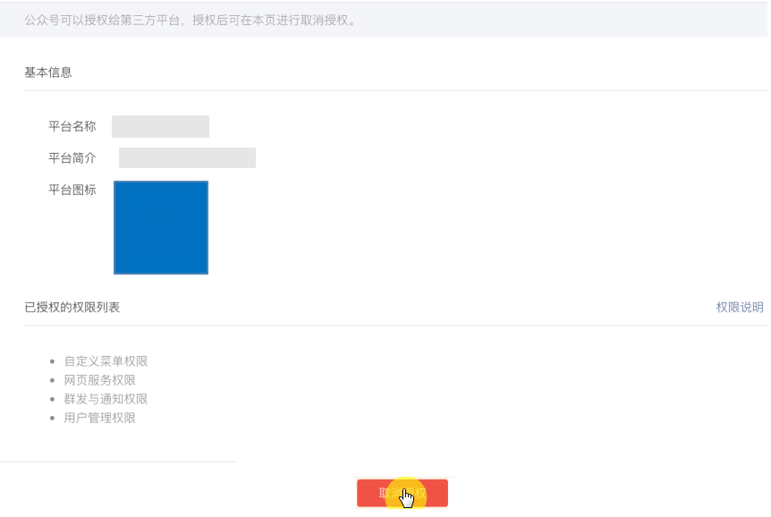 微信公众号管理员在 微信公众号后台 取消授权,绑定关系自动解除,所有登录/绑定链接失效。